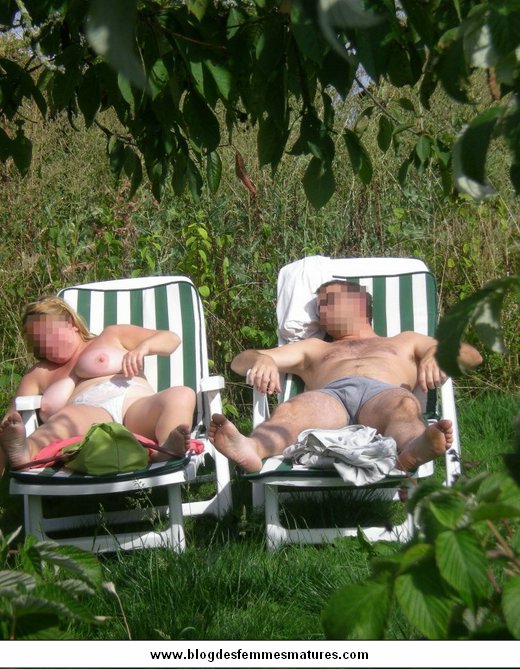 Voici une photo de mes voisins dans leur jardin cet été. C’est un couple dont la femme est une mature avec des gros seins. Ils étaient dans leur jardin quand moi et un pote étions aussi entrain de bronzer. On a donc fait une bonne mission pour pouvoir aller prendre les gros seins de ma salope de voisine. Enfin voilà si vous aimez les photos de femme mature et exhib vous allez être content avec celle ci. On a quand même pris des risques pour prendre la photo sans se faire griller.